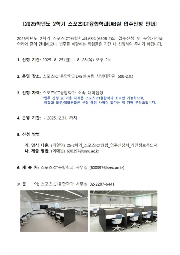 일반 [2025학년도 2학기 스포츠ICT융합학과LAB실 입주신청 안내]